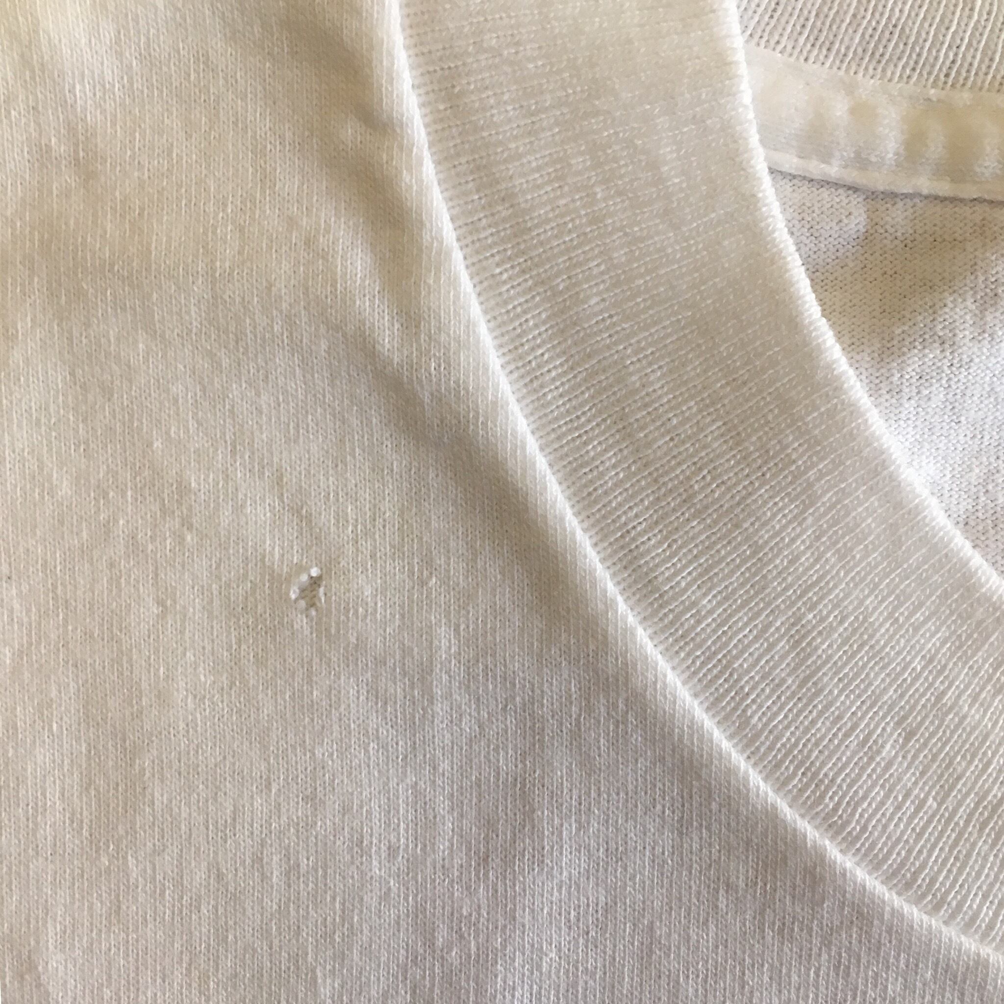 経年変化による色褪せがございますが、ヴィンテージ商品にご理解のある方でしたら、着用に支障はございません。*フロントネック部分とスソにピンホール(小さな穴)がございます。
