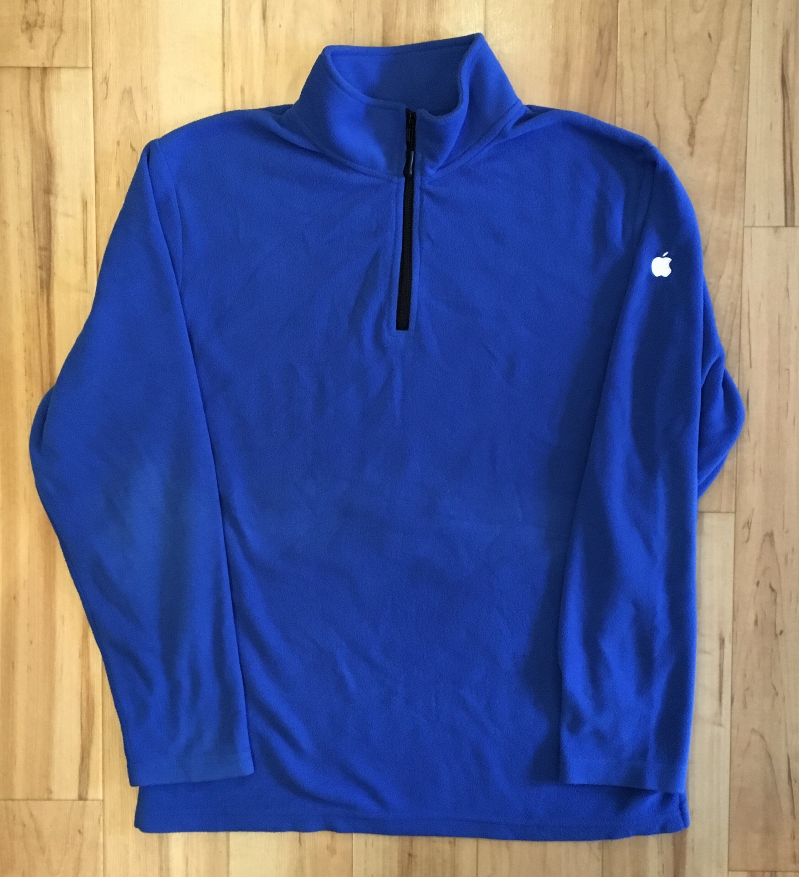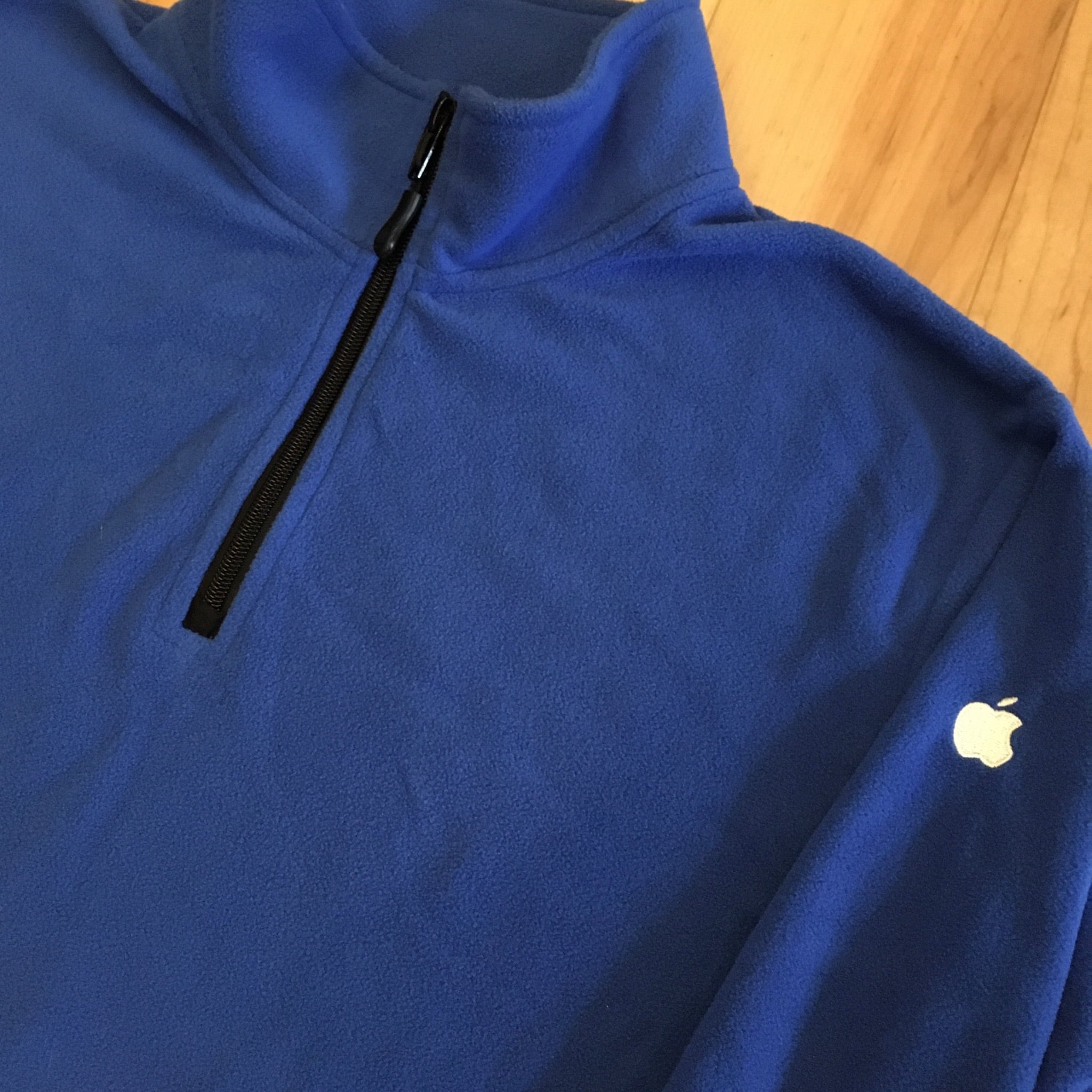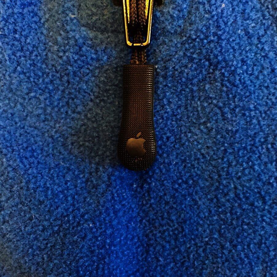 ハーフジップで、ジップの引き手にもAppleロゴ入り。