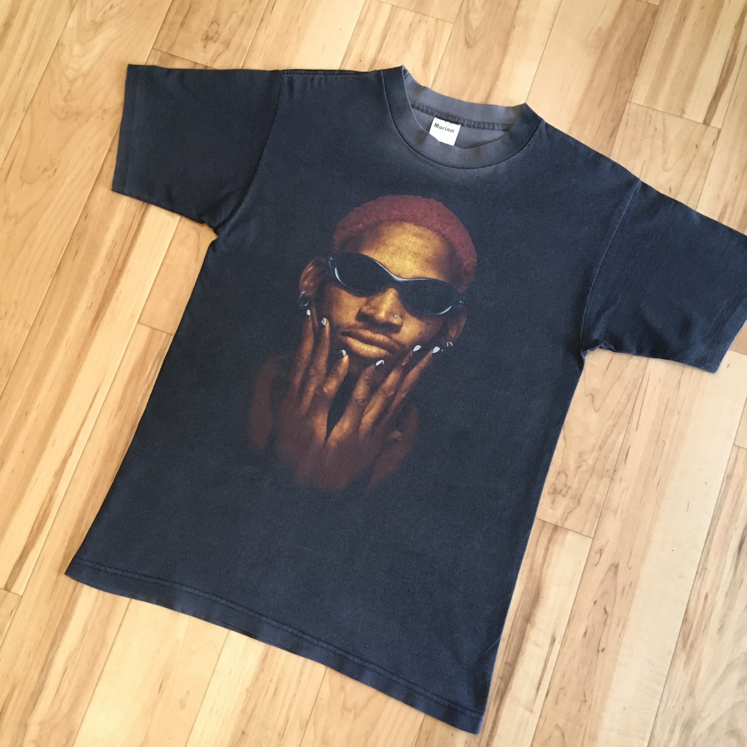 90年製のロッドマンTシャツになります。全体的にヤケがございますが、ダメージは無く雰囲気の良い商品になります。アメリカ製。