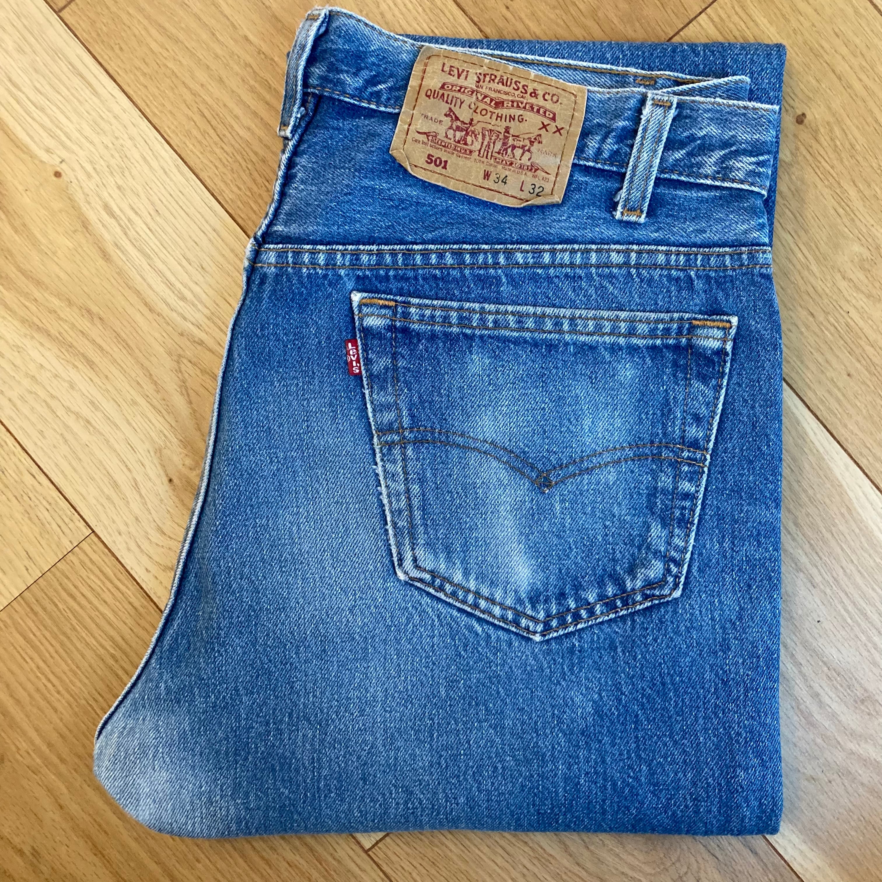 アメリカ製のリーバイス501になります。90年代前半の製造です。パッチやタグ等の付属品もキレイに残った状態です。